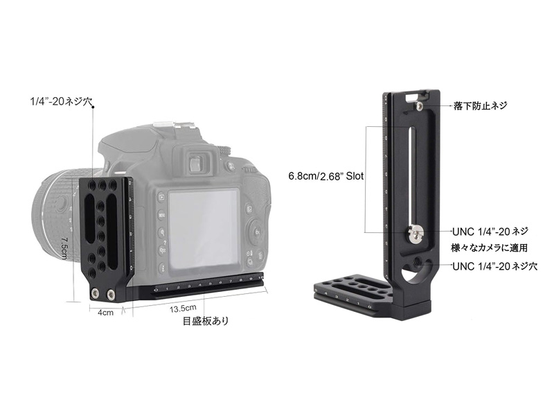 Arca Swiss規格対応L字ブラケットです。SONY FX3などDSLRカメラに対応し縦撮りに最適です。