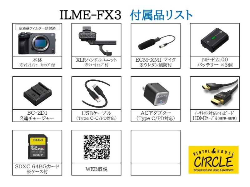HOME > レンタル機器 > カメラ > 4Kカメラ > FX3(SONY)